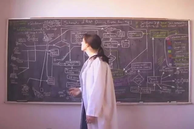 My work in video and performance is a parody on the scientific method to experiment and prove ideas while questioning the unseen biases of being human that undertone an objective scientific endeavor. My videos present artificial life machines in the style of naturalist videos of animal life to exaggerate and create metaphors about machines that are beyond their capabilities. These metaphors when published define how the audience can connect to the machines making the videos a social construct. The videos induce a feeling of wonder that creates pride in the abilities of the human race yet subvert themselves as flawed revealing the creator’s inability to master the creation of life. My performances take the shape of lectures where philosophy grounds artificial life breakthroughs that are explained using absurd diagrams on a blackboard to prove the topic thesis. The biases of the presenter are clearly revealed creating a tension between the validity of the ideas and lack of professional façade in the presenter.